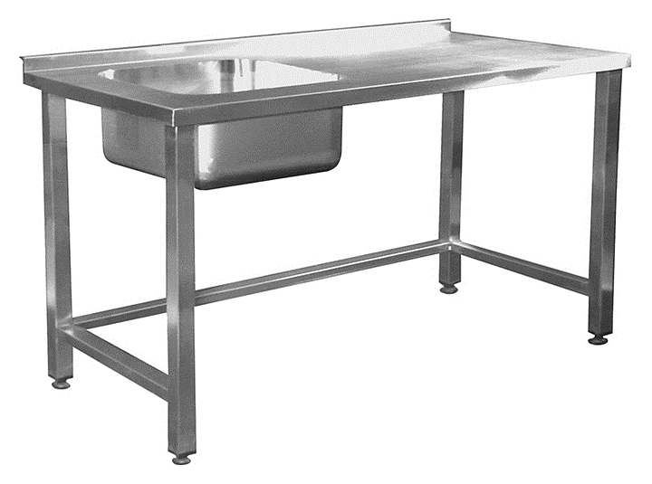 Приставной стол Техно-ТТ СПМ-532/607 предназначен для совместного использования с посудомоечными машинами для расстановки и хранения посуды и кухонного инвентаря, а также для мытья и ополаскивания продуктов и посуды в моечных отделениях на предприятиях общественного питания и торговли. Модель оснащена цельнотянутой емкостью, бортом и регулируемыми по высоте ножками. Разборный каркас выполнен из трубы 40х40х1,2 мм нержавеющей стали AISI 430, обвязка из трубы 40х20х1,2 мм из нержавеющей стали AISI 430 столешница и ванна - из нержавеющей стали AISI 304.