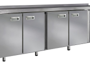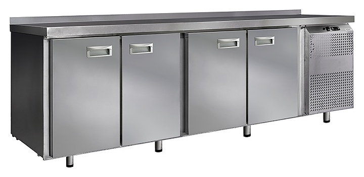Холодильный стол Finist СХС-600-4 предназначен для хранения предварительно охлажденных мясных и рыбных полуфабрикатов, заготовок для салатов, молочной продукции, охлажденных напитков и других пищевых продуктов на предприятиях общественного питания и торговли. Модель оснащена расположенным сбоку агрегатным отсеком, столешницей с задним бортом, 4 холодильными камерами с распашными дверцами, устойчивыми ножками с подпятниками, кабелем питания с евровилкой и кнопочной панелью управления с цифровым дисплеем. Корпус выполнен из высококачественной нержавеющей стали.