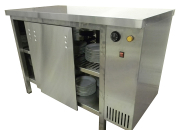 Тепловой стол ЦМИ СТТпДКБ-100/60 используется для подогрева тарелок перед сервировкой, а также для сохранения блюд и напитков в горячем виде на предприятиях общественного питания и торговли. Модель оснащена терморегулятором в правой фронтальной части изделия, кнопками включения и выключения, лампой индикации, 2 дверями-купе, 4 устойчивыми ножками и вентилятором. Изделие полностью выполнено из нержавеющей стали.
