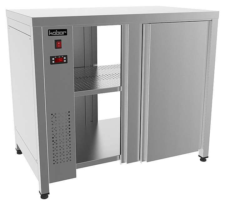 Тепловой стол Кобор HT6-11S предназначен для демонстрации, подогрева и поддержания в теплом состоянии различных блюд на предприятиях общественного питания и торговли. Модель оснащена электронной регулировкой температуры, дверями-купе и регулируемыми по высоте перфорированной полкой и ножками. Корпус выполнен из нержавеющей стали AISI 430.