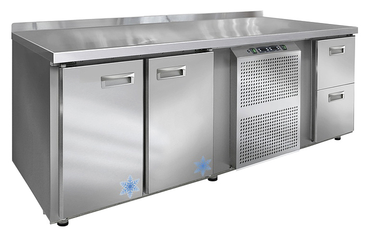 Холодильно-морозильный стол Finist КХС-700-0-2/2 предназначен для хранения замороженных полуфабрикатов и предварительно охлажденных готовых блюд, заготовок для салатов, молочной продукции и напитков на предприятиях общественного питания и торговли. Модель сочетает в себе 2 независимых рабочих объема и оснащена 2 панелями управления для регулировки температуры в камерах. Оборудование полностью выполнено из высококачественной пищевой нержавеющей стали.
