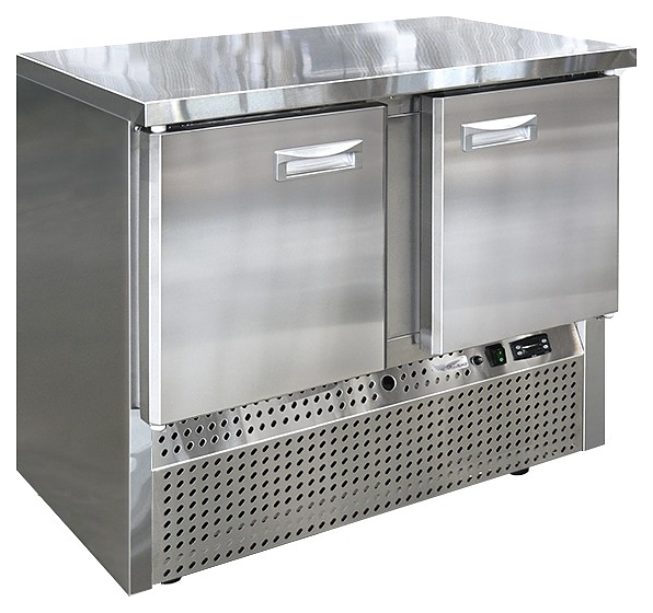 Морозильный стол Finist НХСн-700-2 предназначен для хранения предварительно замороженных пищевых продуктов на предприятиях общественного питания и торговли. Модель оснащена расположенным снизу агрегатным отсеком, столешницей, 2 холодильными камерами с распашными дверцами, устойчивыми ножками с подпятниками, кабелем питания с евровилкой и кнопочной панелью управления с цифровым дисплеем. Цельнозаливной корпус выполнен из высококачественной нержавеющей стали.