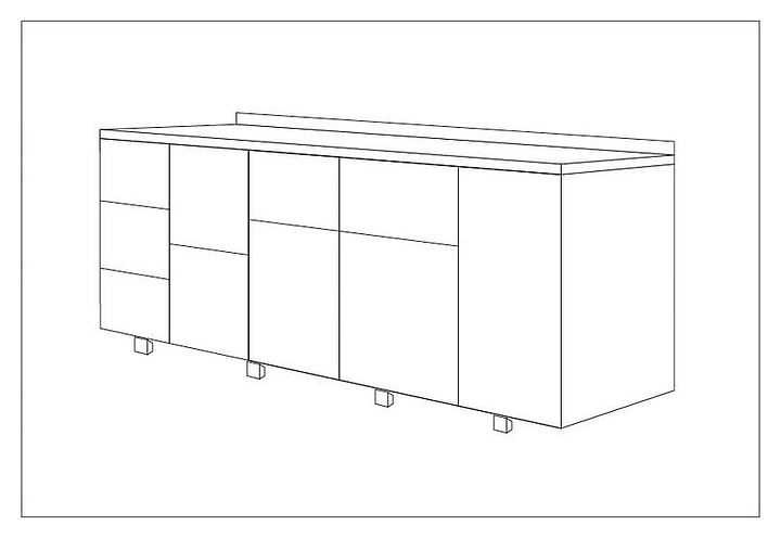 1 секция: 3 маленьких ящика; 2 секция: 2 стандартных ящика; 3 секция: 1 маленький ящик и 1 большой ящик; 4 секция: 1 маленький ящик и 1 большой ящик