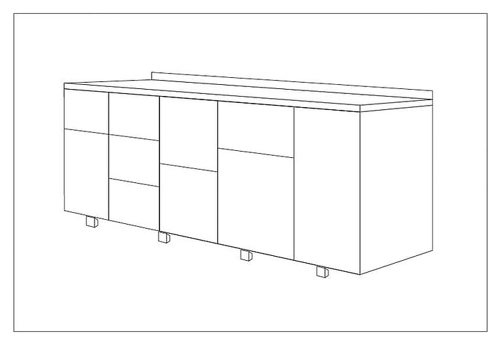1 секция: 1 маленький ящик и 1 большой ящик; 2 секция: 3 маленьких ящика; 3 секция: 2 стандартных ящика; 4 секция: 1 маленький ящик и 1 большой ящик