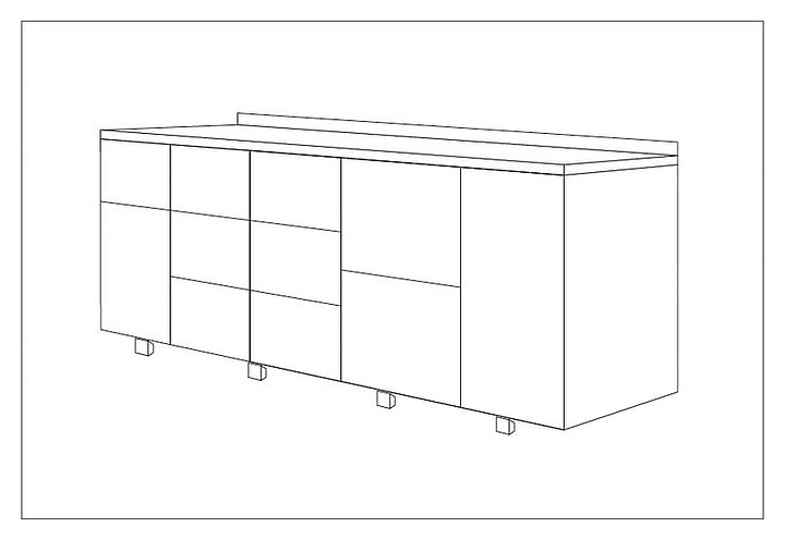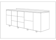 1 секция: 1 маленький ящик и 1 большой ящик; 2 секция: 3 маленьких ящика; 3 секция: 3 маленьких ящика; 4 секция: 2 стандартных ящика