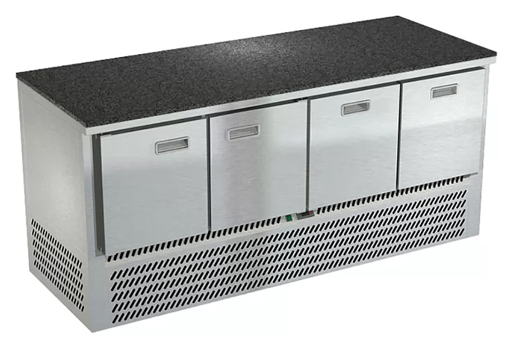Морозильный стол Техно-ТТ СПН/М-322/22-1907 предназначен для раскатки теста, обработки, заморозки и долговременного хранения продуктов, полуфабрикатов, напитков и мороженого на предприятиях общественного питания и торговли. Модель оснащена компрессором, произведенным в Испании, 2 дверями с доводчиками (Польша), 2 регулируемыми по высоте полками-решетками, 2 гастронормированными ящиками, направляющими с доводчиками (Австрия) и регулируемыми опорными ножками. Корпус выполнен из нержавеющей стали AISI 430, задняя стенка и дно - из оцинкованной стали, столешница - каменная.