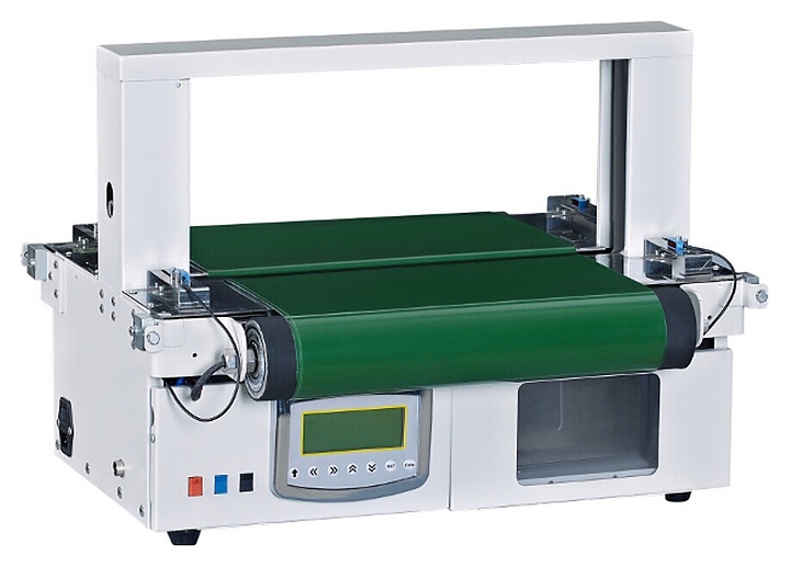 Настольная обандероливающая машина Hualian WK02-30A используется в банках, типографиях, фармацевтических компаниях, почтовых отделениях, на предприятиях промышленности и торговли для обвязки банкнот, бланков, коробок и другой разнообразной продукции лентой из бумаги или ориентированной полипропиленовой пленки (OPP). Модель оснащена горизонтальным ленточным конвейером и расположенными на фронтальной стенке панелью управления и отсеком для бобины с лентой.