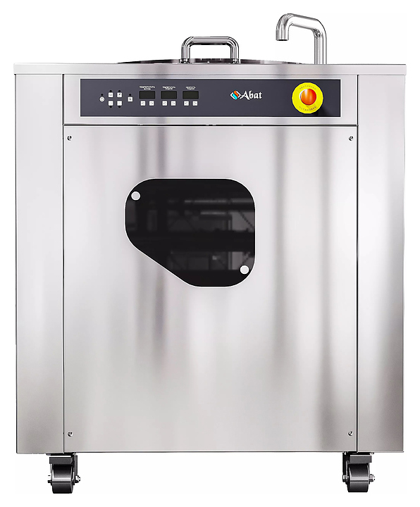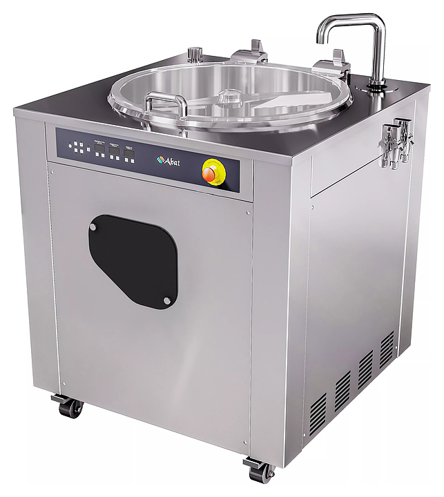 Котел для плавления шоколада Abat КПШ-150 предназначен для плавления шоколада и поддержания его температуры на предприятиях общественного питания и торговли. Модель оснащена терморегулятором, съемным миксером для перемешивания, насосом для откачивания продукта, сливным краном, расположенным на передней стенке под съемной крышкой, и колесными опорами с ножным тормозом. Корпус выполнен из аустенитной нержавеющей стали AISI 304.