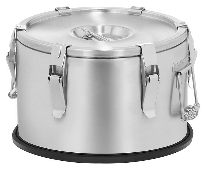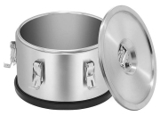 Профессиональный термос VIATTO VA-TP10SS предназначен для поддержания температуры горячих блюд и их перемещения на предприятиях общественного питания и торговли. Модель оснащена крышкой со специальным клапаном, которая крепится на 6 заклепках. Корпус выполнен из нержавеющей стали.