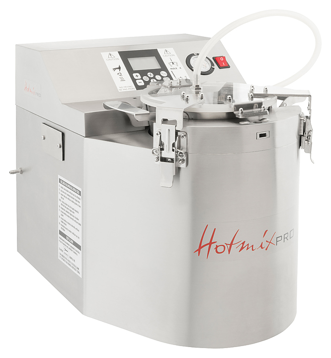 Термомиксер HotmixPRO Master 5 Stars используется на предприятиях общественного питания и торговли для измельчения, взбивания, смешивания, поджаривания и пастеризации продуктов при высоких температурах и под вакуумом. Модель оснащена конической чашей. Корпус, ножи и подшипники изготовлены из нержавеющей стали.