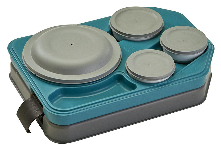 В комплект поставки входит тарелка из фарфора с двумя отделениями с пластиковой крышкой, подставка под тарелку - пеллета, две миски 400 мл и одна миска 500 мл из фарфора, пластиковые крышки к мискам.
