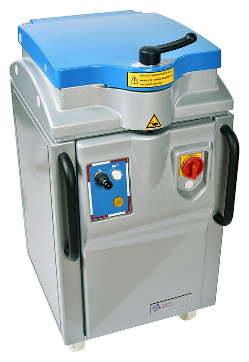 Полуавтоматический тестоделитель Daub Robocut S20 используется на предприятиях общественного питания и торговли для деления теста на квадратные заготовки для последующей выпечки различных хлебобулочных изделий. Модель оснащена квадратной кюветой, разделительным диском, состоящим из сменных делительных сегментов, и поворотными колесами с тормозами. Корпус выполнен из стали, разделительный нож и верхняя пластина - из нержавеющей стали, делительные сегметы - из ПЭТ.