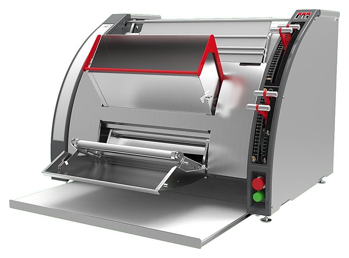 Тестозакаточная машина Jac Forma используется на предприятиях общественного питания и торговли, в пекарнях и кондитерских для формования заготовок для батонообразных изделий и багетов. Модель оснащена 3 раскаточными валиками, выходной полкой на скользящих направляющих, эргономичными рычагами регулировки, сверхбыстрой сменой лент без демонтирования машины.
