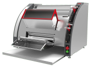 Модель превращается из формовочной машины в раскаточную при открытии переднего выводного конвейера для выхода плоских типов изделий.