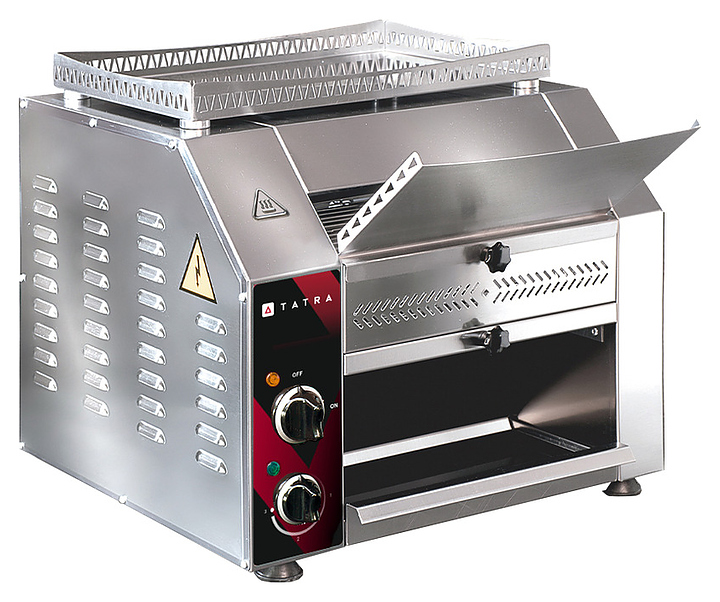 Конвейерный тостер Tatra TTC 1 предназначен для поджарки и подогрева кусочков хлеба на предприятиях общественного питания. Перфорированные стенки обеспечивают хорошее охлаждение нагревательного элемента и предохраняют от перегрева. Модель оснащена 3 уровнями мощности с регулятором нагрева, ящиком для крошек и лотком для хлеба. Корпус выполнен из нержавеющей стали.