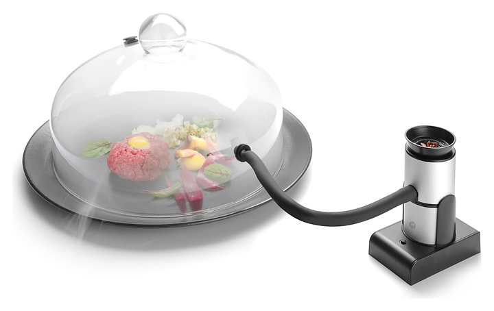 Коптильный пистолет HENDI 199992 предназначен для окуривания холодным и ароматным дымом мяса, морепродуктов, салатов, овощей, закусок, десертов, маринадов, соусов, супов, коктейлей и других продуктов и напитков любой плотности и консистенции на предприятиях общественного питания и торговли, а также в домашних условиях. Модель оснащена съемной камерой сгорания со встроенным фильтром. Корпус выполнен из алюминия и способствуют охлаждению дыма перед подачей.