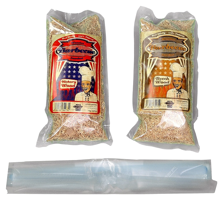 В комплект поставки входят пакет и 2 упаковки древесных опилок различных сортов.