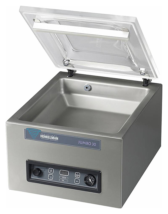 Настольный аппарат Henkelman Jumbo 30 позволяет создать вакуумную упаковку для различных типов продуктов, от мяса и рыбы до овощей и сыров, а также для фармацевтической, электронной и прочей непищевой продукции. Такой метод упаковки позволяет предотвратить попадание бактерий, тем самым увеличивая срок годности, сохранить необходимый уровень влаги и уберечь от заветривания.