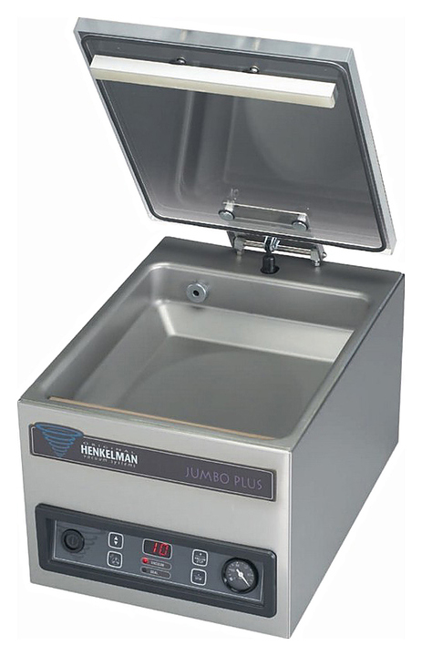 Настольный аппарат Henkelman Jumbo Plus позволяет создать вакуумную упаковку для различных типов продуктов, от мяса и рыбы до овощей и сыров, а также для фармацевтической, электронной и прочей непищевой продукции. Такой метод упаковки позволяет предотвратить попадание бактерий, тем самым увеличивая срок годности, сохранить необходимый уровень влаги и уберечь от заветривания.