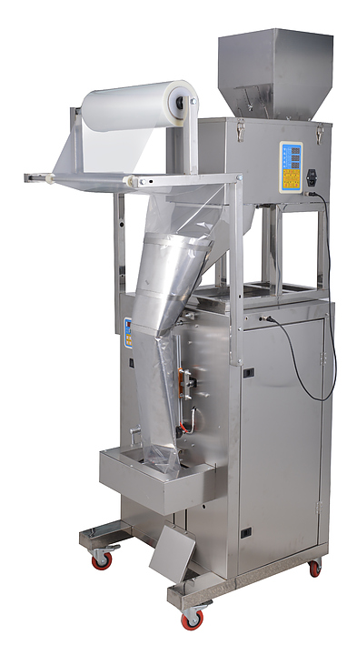 Фасовочно-упаковочная машина Hualian DXDK-1000 NEW используется на предприятиях пищевой, фармакологической, химической промышленности для дозированной упаковки чая, круп, сахара, специй, семян и других легкосыпучих продуктов в пакеты типа «подушка». Модель оснащена весовым дозатором порций, воронкообразным загрузочным бункером, рулонодержателем с рейлинговыми направляющими для пленки, панелями управления с мембранной клавиатурой и цифровыми дисплеями. Корпус и все соприкасающиеся с продуктом компоненты выполнены из нержавеющей стали.