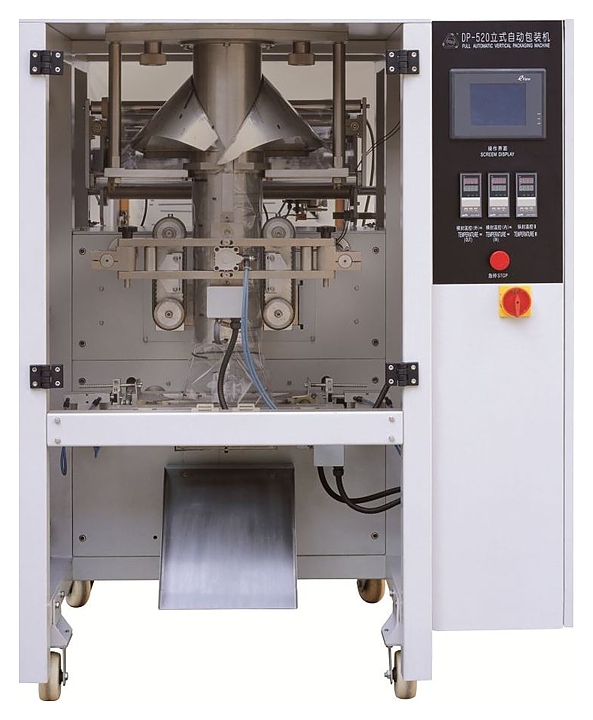 Вертикальный упаковочный автомат МАГИКОН DP-520 используется на производственных площадках, предприятиях пищевой промышленности, общественного питания и торговли для формирования трехшовной упаковки для сыпучих, порошкообразных, гранулированных, пылящих и слеживающихся товаров в любые термо-свариваемые пленки с печатью или в рулонах. Модель оснащена электронным датчиком фотометки и PLC-панелью управления.