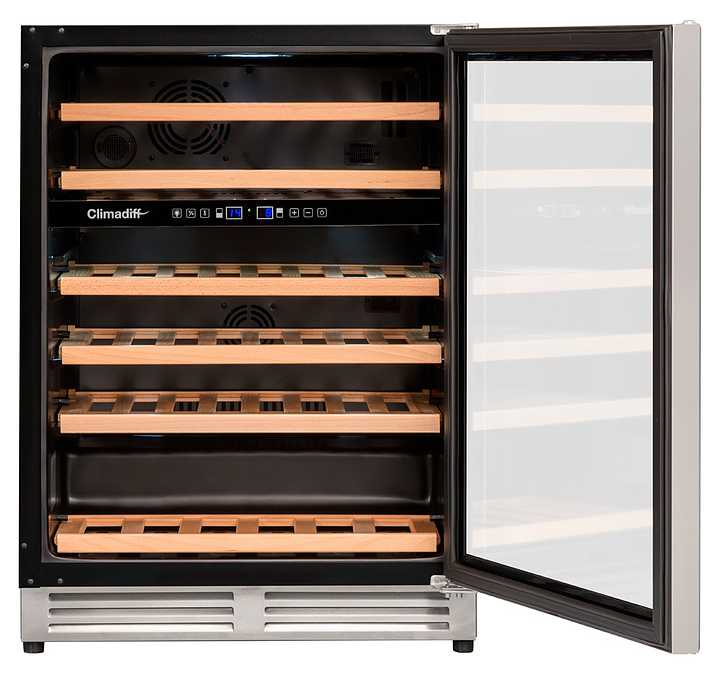 Винный шкаф Climadiff CBU51D1X предназначен для кратковременного хранения вина при определенном уровне влажности и температуры в ресторанах, специализированных магазинах, отелях, подсобных складских помещениях, в частных домах или квартирах и подготовки вина к подаче на стол. Модель оснащена сенсорным цифровым дисплеем, отключаемой внутренней подсветкой и 4 регулируемыми по высоте ножками. Дверь выполнена из двойного закаленного стекла с защитой от УФ-лучей, рамка дверцы - из нержавеющей стали, полки - из бука.