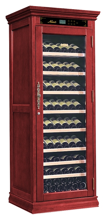 Винный шкаф Libhof Noblest NR-102 предназначен для хранения при оптимальных условиях бутилированного вина различных сортов в барах, ресторанах, специализированных магазинах, подсобных складских помещениях, а также в домашних условиях. Модель оснащена холодильной камерой со съемной полкой и 6 демонстрационными, полкой с ванночкой и укороченной полкой, распашной дверью на внутренних петлях с кодовым замком, прозрачным обзорным стеклом и сенсорной панелью управления с дисплеем. Корпус выполнен из американского дуба, полки - из массива бука.