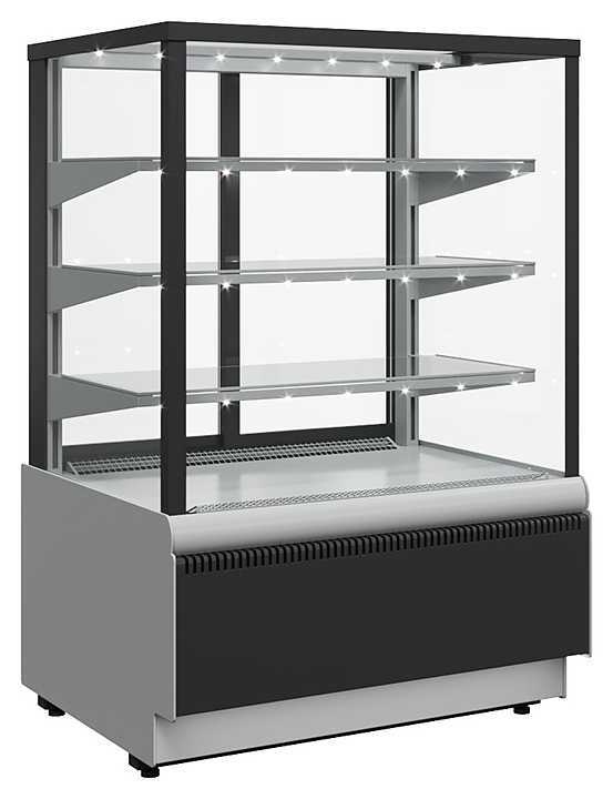 Кондитерская витрина Carboma KC70 VV 1,3-1 Standard используется на предприятиях общественного питания и торговли для демонстрации, охлаждения и кратковременного хранения тортов, пирожных и других кондитерских изделий. Модель оснащена прямыми стеклопакетами. Корпус выполнен из стали, боковины - из металла толщиной 2,5 мм, раздвижные задние створки на роликах - из стеклопакета, термоизоляция корпуса - из пенополиуретана.