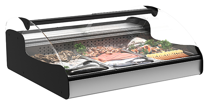 Холодильная витрина Carboma А89 SV 1,0-1 (ВХСр-1,0 Арго XL Техно) используется на предприятиях общественного питания и торговли для демонстрации, охлаждения и кратковременного хранения кондитерских изделий и десертов "семифредо", а также свежей рыбы. Модель онащена гнутым передним стеклом и ночными шторками. Корпус выполнен из стали с ППУ-теплоизоляцией, столешница и экспозиционная поверхность - из нержавеющей стали.