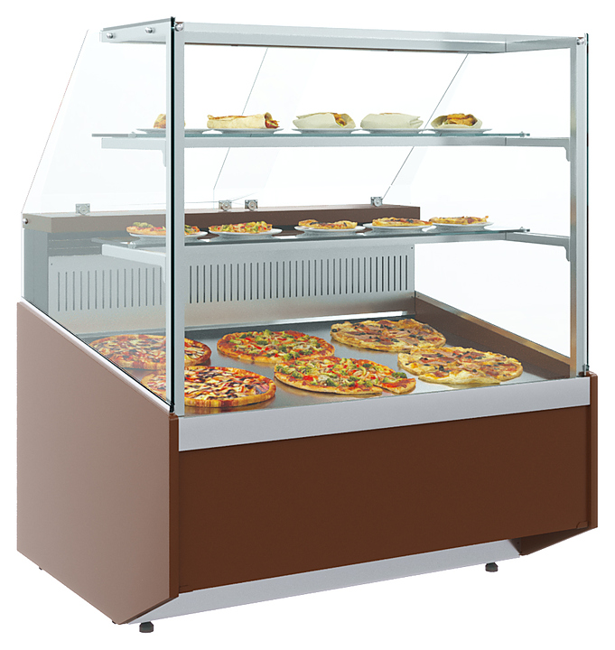 Тепловая витрина Carboma KC95 VH 1,2-1 используется на предприятиях общественного питания и торговли для поддержания в горячем состоянии, кратковременного хранения, демонстрации и продажи выпечки, различных закусок и готовых блюд. Модель оснащена гнутым передним стеклом, 2 полками-решетками, вентиляторами и регулируемыми ножками высотой от 30 до 50 м. Корпус выполнен из стали с ППУ-теплоизоляцией, зона выкладки и столешница - из нержавеющей стали, раздвижные задние створки - из оргстекла, передняя панель - из МДФ, декорированного под дерево.