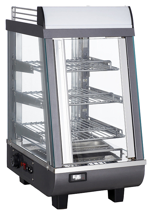 Тепловая витрина GASTRORAG RTR-76L предназначена для демонстрации, подогрева и кратковременного хранения пиццы, булочек, пирогов, различных закусок и т.д. на предприятиях общественного питания и торговли. Модель оснащена функцией увлажнения (испарение воды из ванны), раздвижными дверцами спереди и сзади, подсветкой и 3 полками-решетками. Корпус выполнен из стали, окрашенной в черный цвет.