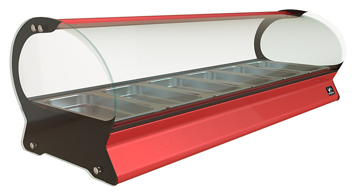 Тепловая витрина Кобор SE-4H серии Space предназначена для демонстрации, подогрева и поддержания в теплом состоянии различных блюд на предприятиях общественного питания и торговли. Витрина имеет округлые формы и неповторимый дизайн. Модель оснащена светодиодной подсветкой.