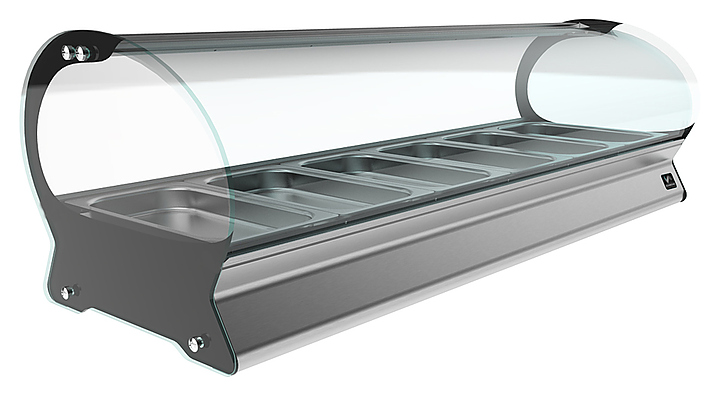 Тепловая витрина Кобор SE-6H серии Space предназначена для демонстрации, подогрева и поддержания в теплом состоянии различных блюд на предприятиях общественного питания и торговли. Витрина имеет округлые формы и неповторимый дизайн. Модель оснащена светодиодной подсветкой.
