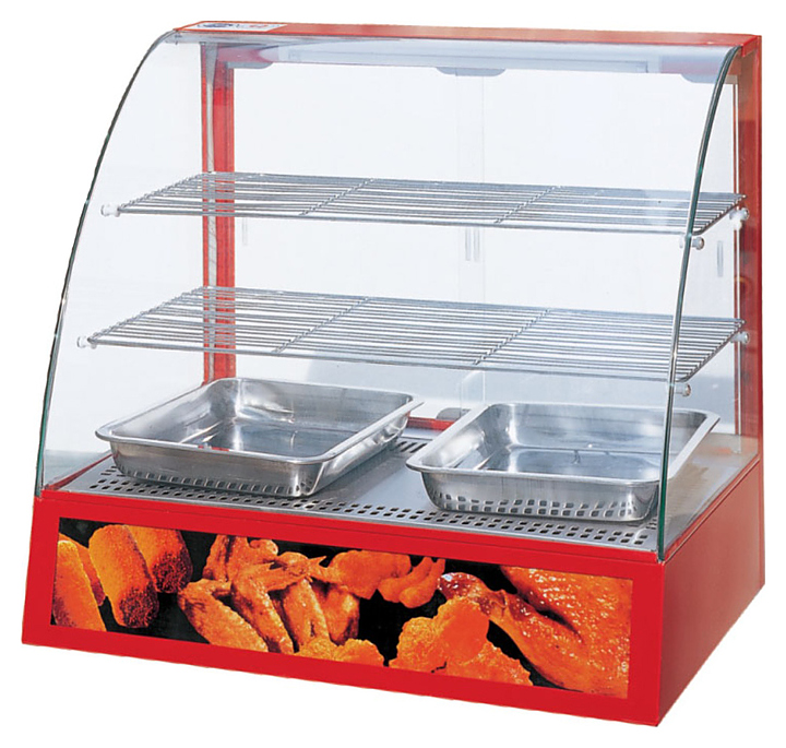 Тепловая витрина ROAL HW-2P предназначена для демонстрации и поддержания блюд в горячем состоянии на предприятиях общественного питания и торговли. Модель оснащена термостатом, декоративной лампой освещения для лучшего вида пищевых продуктов, 2 полками из нержавеющей стали и 2 емкостями. Корпус выполнен из крашенного металла.