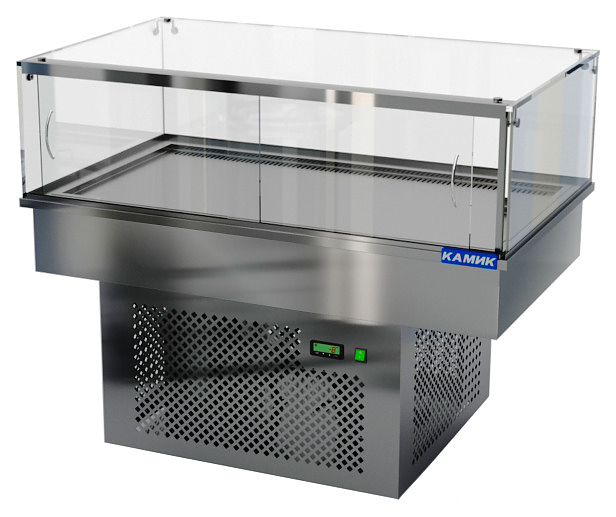 Встраиваемая холодильная витрина КАМИК ВХ-341267 используется на предприятиях общественного питания и торговли для охлаждения, демонстрации и кратковременного хранения продуктов и готовых блюд. Витрина оснащена куполом и подсветкой. Корпус выполнен из нержавеющей стали AISI 430 толщиной 1 мм, столешница - из нержавеющей стали AISI 304 толщиной 1 мм, купол - из каленого стекла толщиной 10 мм. Купол поставляется в разобранном виде.