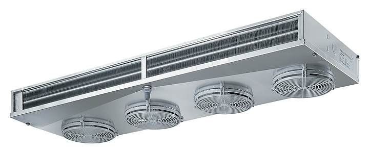 Воздухоохладитель Rivacold RS4380B используется на предприятиях пищевой промышленности, общественного питания и торговли для поддержания оптимальной температуры в холодильных камерах, предназначенных для хранения замороженной продукции. Модель состоит из теплообменника, 4 вентиляторов с защитными решетками и корпуса. Корпус выполнен из алюминиевых панелей, теплообменник – из медных трубок и алюминиевых ламелей, кожухи вентиляторов – из пластика на стальных кронштейнах, винты, шайбы и гайки – из нержавеющей стали.