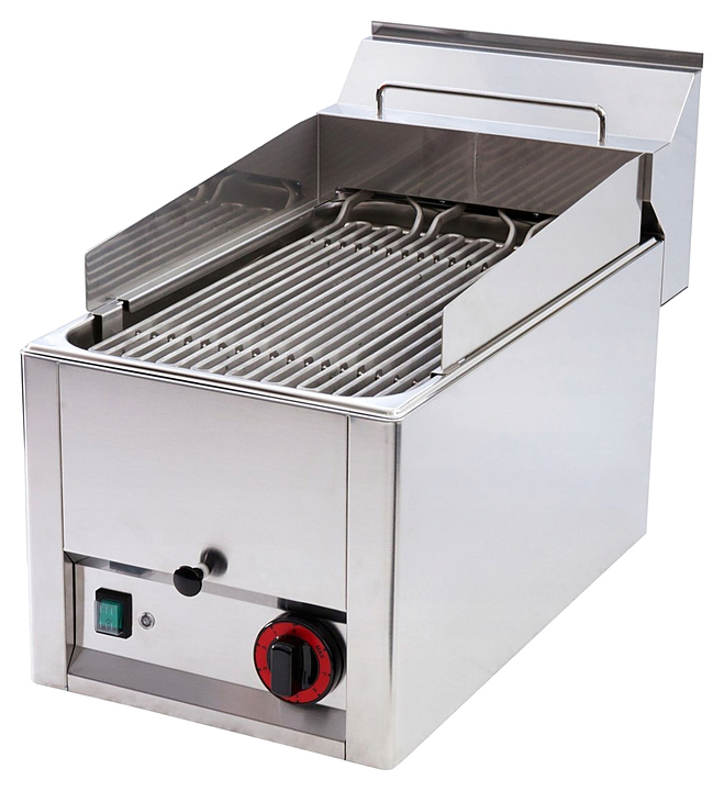 Гриль-бройлер Azimut GV 30 EL серии 600 предназначен для жарки мяса, птицы, рыбы, овощей и быстрого разогрева полуфабрикатов на предприятиях общественного питания и торговли. Модель оснащена термостатом, бортиками с 3 сторон, жиросборником, съемными резервуаром для воды и нагревательным блоком с фиксатором. ТЭНы выполнен из нержавеющей стали AISI 304, резервуар для воды - из нержавеющей стали.