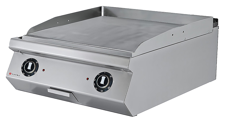 Жарочная поверхность Tatra TET.89S предназначена для жарки мяса, птицы, рыбы, овощей и быстрого разогрева полуфабрикатов на предприятиях общественного питания и торговли. Модель оснащена электромеханической панелью управления с термостатом, регулируемыми ножками, 2 зонами нагрева с независимой регулировкой и съемной емкостью для сбора жира. Корпус выполнен из нержавеющей стали.